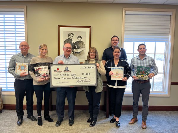 GALENA — For the ninth consecutive year, Apple River State Bank and First Community Bank of Galena has renewed the bank’s sponsorship of the Dolly Parton Imagination Library. This transformative early childhood literacy program provides free books to children from birth to age five. With the bank’s donation of $12,500, the program continues to make a significant impact on young readers across the region.