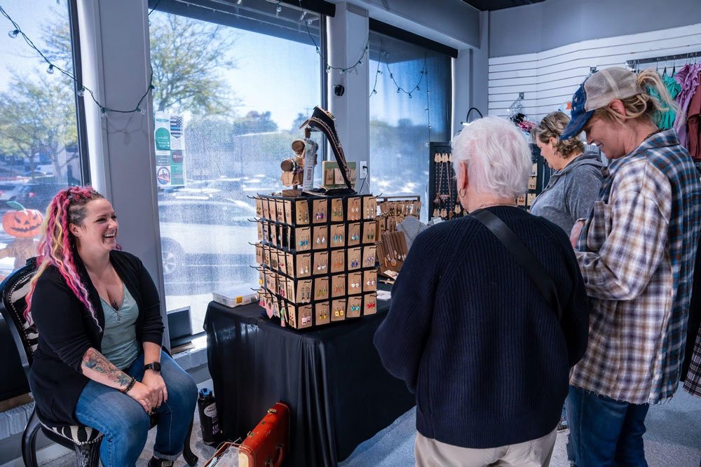 “I also do bullet casing jewelry. So my brother is a veteran, and he reloads ammo. He’s like, a gun enthusiast, but upon reloading, there’s things that can’t be reloaded, like these .22 shells, but also things he can’t reload because it’s below whatever standards for reloading he gives to me, and then I give it a new home and repurpose it into something else,” she explained.