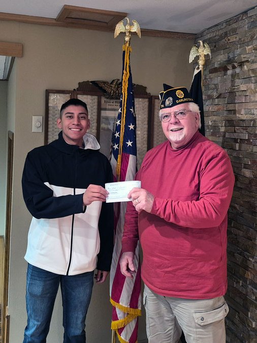 Juan had already left for his military service, but Post 214 were able to contact him and let him know the Post had support funds for him. Juan is at home on leave and Legion leaders were able to have him come to the Legion Post and present him with a check for $100 and a Membership to Darlington American Legion Post 214.