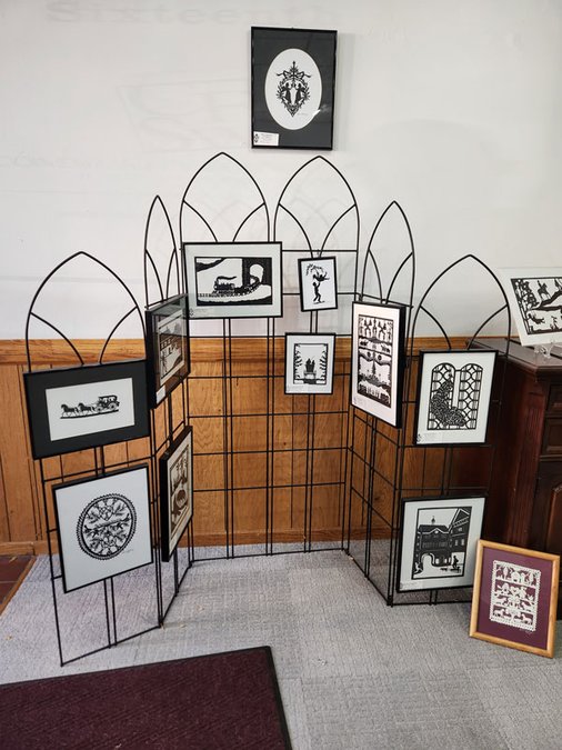 Linda Schiesser developed her own style after retiring from a career in teaching and archival research. She was encouraged by her mother, Elda, and her designs reflected many aspects of her Swiss heritage. Her work has been displayed at the Monroe Arts Center, as well as both the Swiss Center of North America and the Swiss United Church of Christ in New Glarus. She has also given presentations of her art to the Swiss Ambassador in Washington D.C. in 2018, the Consulate General of Switzerland in Vancouver, Canada in 2020, and to the canton (state) government of Glarus, Switzerland in 2021. Linda used her educational experience to teach classes on scherenschnitte and had demonstrated this folk art at festivals and art fairs before passing away in 2025.