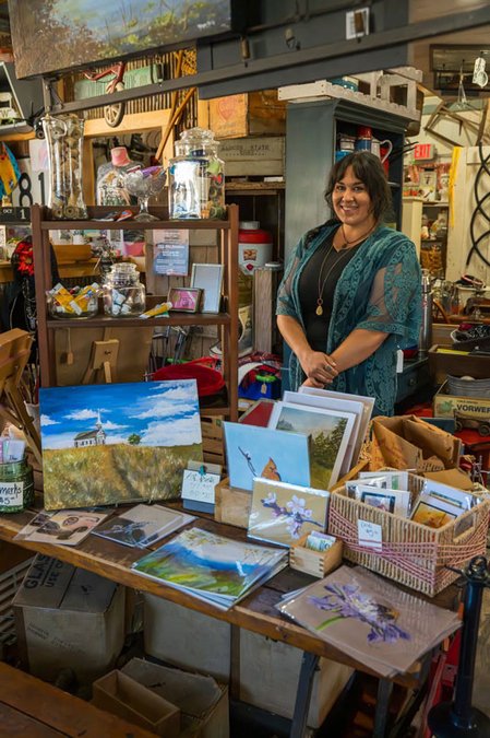 Her main inspiration for her art is nature. She really likes to capture nature scenes in her pieces, focusing a lot on the rural types of settings that are prevalent in the area.