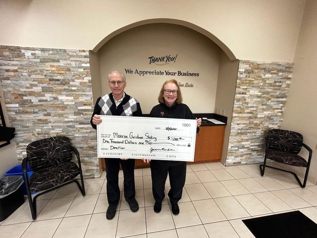 For the Bank of New Glarus in Monroe, which recently donated $200 to the stocking fund, giving back to the community is central to continued success, according to the bank’s Angie Parr.