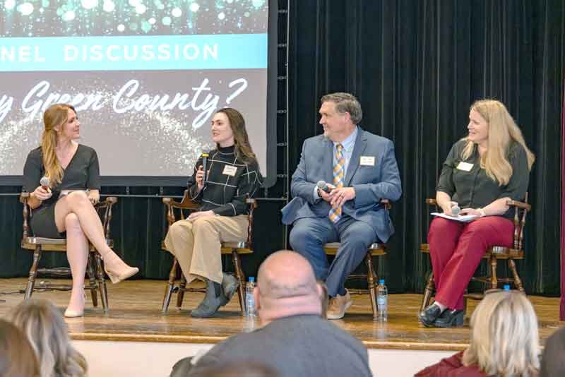 The evening also featured a three-person panel discussion focused on why people choose to live and work in Green County. Panelists included Nic Owen, Green County’s new County Administrator, Dr. Stephanie Schmidt, Plant Chemist at Badger State Ethanol, and Madeline Kuhn, Cheesemaker at Emmi Roth. Each shared their personal story and perspective, reinforcing a central theme of the night: economic development is ultimately about people and the choices they make to invest in a community.