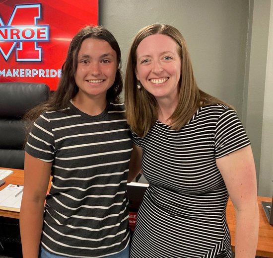 Karlee Boll (left), Monroe High School senior, and Susan Anderson (right), Monroe High School Learning and Technology Coach, were among the most recent recipients of the School District of Monroe Excellence in Education winners.