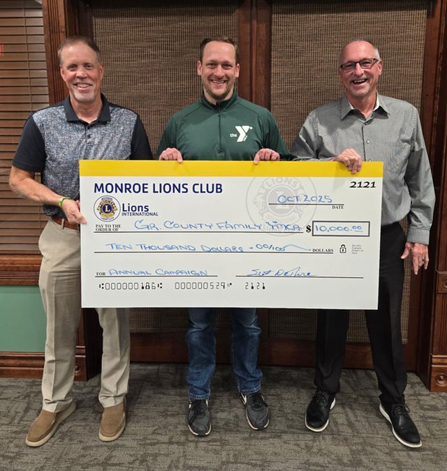 “The Monroe Lions Club has been a long-standing partner in helping the YMCA strengthen our community,” said Trent Henning, Executive Director of the Colony Brands Green County Family YMCA. “The Lions Club’s generosity will help us expand access, strengthen families, and continue building a Y that truly serves everyone in Green County.”