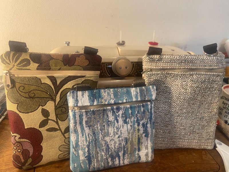 “I have these big tote bags and they look patchworky, kind of, they’re artistic, and I use upholstery fabrics, so I combine all different textures and colors to make them,” Halik said.