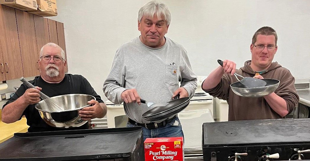 MONTICELLO — Zwingli Brotherhood members (L-R) John Baebler (Scribe), Tim Kolasch (President), and J.R. Baebler (Chief Cook) are ready to serve an “All Saints Day Pancake Breakfast” from 7 a.m. to 11 a.m. on Saturday, Nov. 1 from at Zwingli U.C.C., 416 E. Lake Avenue, Monticello.
