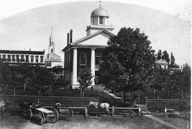 Imagine what Monroe was like in the fall of 1865. The Civil War had ended earlier that year. The old Court House was located in the center of the Square, surrounded on all four sides with many wooden buildings separated by a few brick buildings. The population of Monroe would have been about 2,800. At that time Presidents issued Thanksgiving proclamations annually; President Andrew Johnson picked the first Thursday in December in 1865. We will learn today how Monroe celebrated Thanksgiving that year.