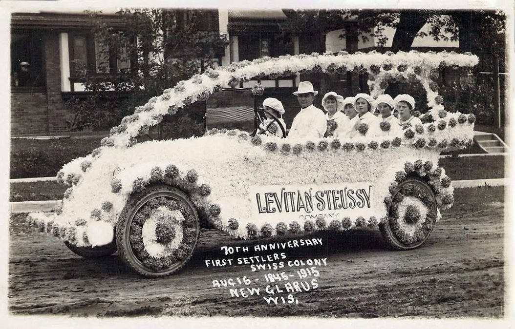 Levitan and Steussy float in 1915. They had a store on Main Street. Sol Levitan went to Madison and was Secretary of Treasury for many years for the State of Wisconsin. / Photo supplied by the New Glarus Historical Society