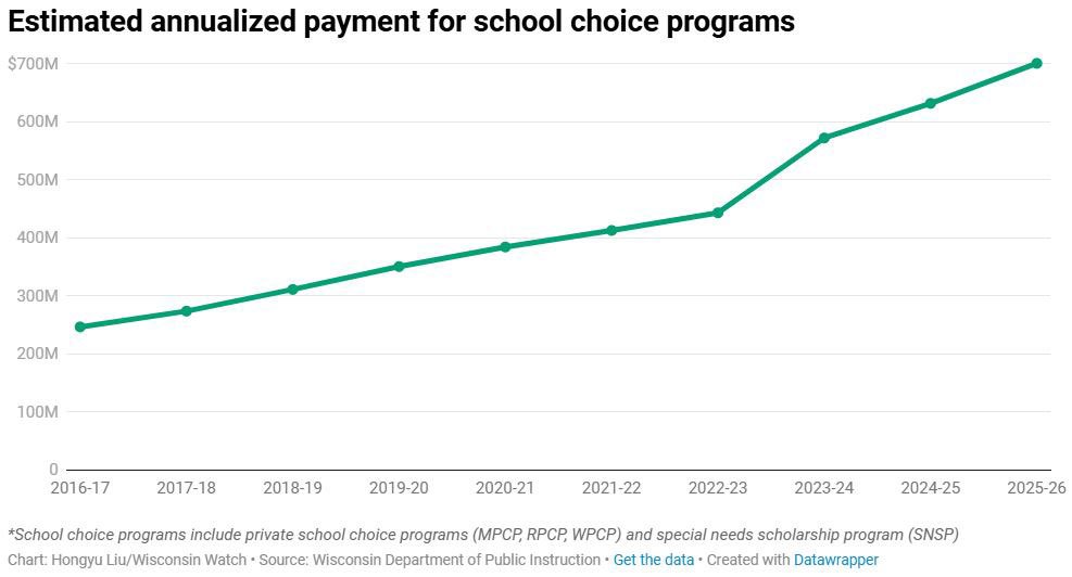 Except in Milwaukee, where the program is directly funded by the state budget, the funding is deducted from the state aid to each school district. This school year, $357.5 million was deducted.