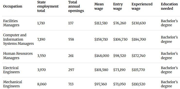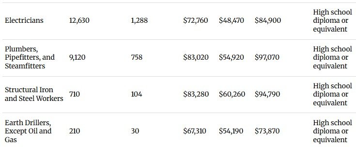 You can use the interactive table below to explore many of the jobs data centers are expected to create, including wages, employment totals and required education.