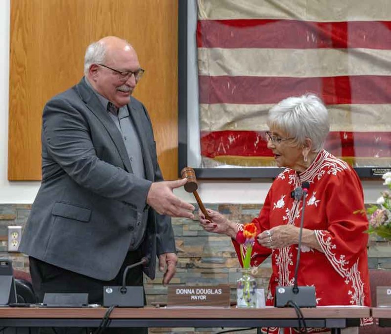 MONROE — The city welcomed a new mayor, Tom Miller, and said goodbye to Donna Douglas, who has served two terms in the top job.
