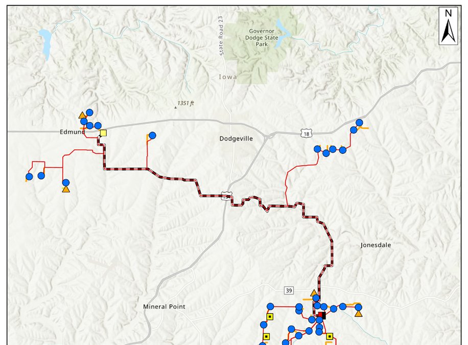 Wind project is planned to generate 300 megawatts of energy from 51 wind turbines in central and southern Iowa County and northern Lafayette County, according to a new Pattern Energy map.