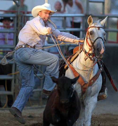 Hume used a new white quarter horse, Junior, in the tie-down competition.