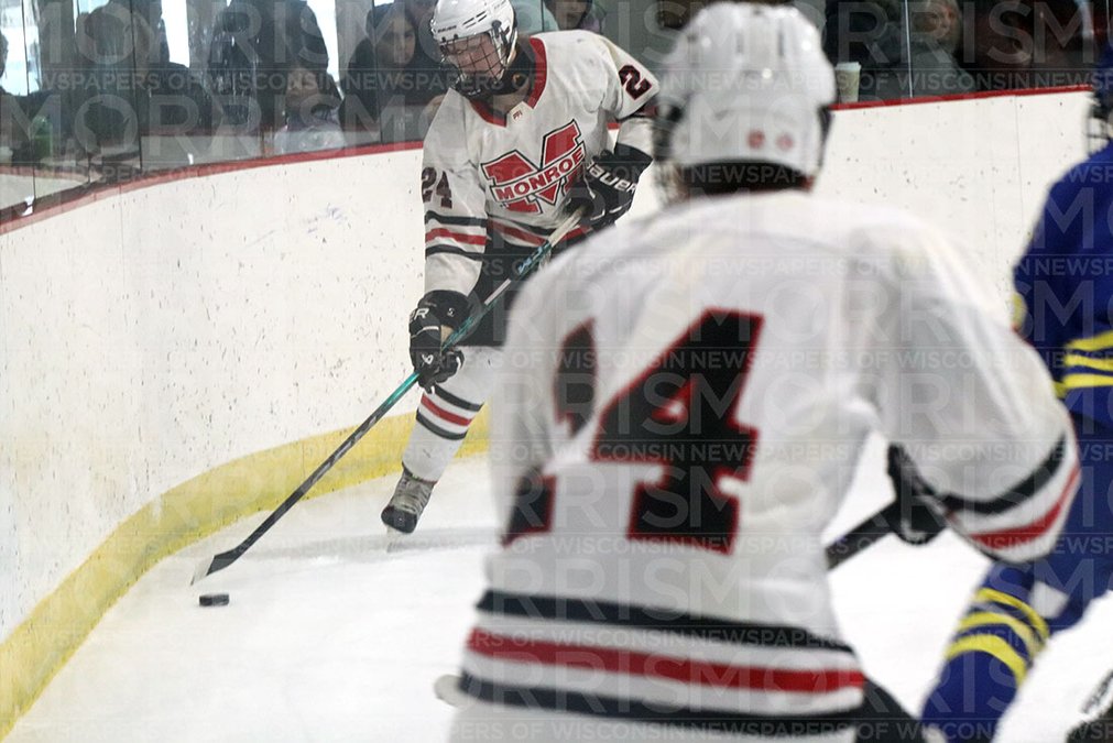 The Cheesemakers came to life in the latter part of the third period when senior Tysen Folgate scored a goal with an assist from junior Beau Janecke to make it 4-1. Moments later, senior Hans Brandt scored a power play goal with assists by senior Brady Stuart and senior Brody Goode to pull the Cheesemakers to within 4-2. That would be all he scoring for Monroe as the Cheesemakers were unable to close the gap any further.