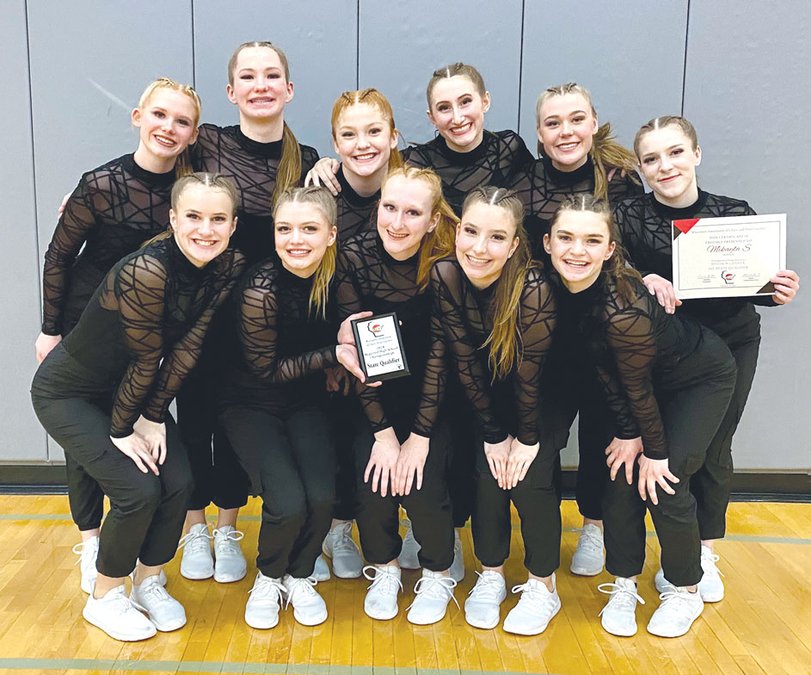 The Monroe Dance Team competed at regionals in Watertown on Jan. 27. As a team, the Cheesemakers qualified for state with their jazz routine, and sophomore Mikayla Schartzlow qualified as a soloist. State will take place Feb. 2-3 in La Crosse. Back row pictured left to right: Edie Winslow, Aubrey Davis, Abby Grossen, Kierra Zahradka, Kaegann Paulson and Mikayla Schartzlow. Front row pictured left to right: Maddie Ruegsegger, Melanie Westgard, Kiera Indergand, Lauren Stelter and Reaghan Schmelzer.