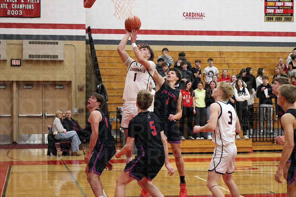 Roth hit a three to give the Glarner Knights a double-digit lead at 23-13 with around seven minutes to go in the first half. A layup in transition by Julseth increased the lead to 20 at 33-13 with 4:31 remaining in the first half. New Glarus led by as much as 25 at 41-16 with around two minutes left in the half. Searls made three free throws to put points on the board for the Cardinals as the half ended with New Glarus on an 18-5 run and holding a 41-19 lead.