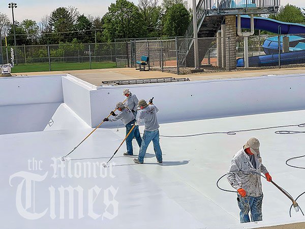 Coplien Painting of Monroe puts on the finishing touches to the Monroe Municipal Pool, which went under extensive refinishing over the past nine months. The pool is set to open to the public starting June 10.