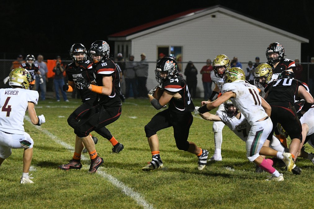 The Chieftains, not wanting to let the game get out of hand, responded with a quick, 1:34 drive and a successful PAT to pull the game within a score. PC forced a punt, and nearly even the score, but on a second down pass that almost certainly would have resulted in a visiting team touchdown, Brody Argall snatched the ball out of the air at his team’s 10-yard line. He brought the ball to the BHW 42, nearly flipping field position in the process.