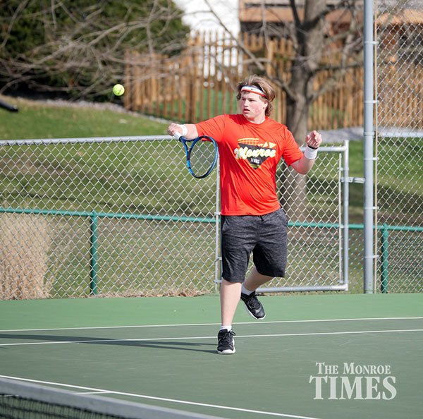 Portage’s Owen Benck defeated Monroe freshman Matthew Setterstrom 6-2, 6-4 in the No. 1 singles match. At No. 2 singles, Monroe sophomore Ryan Mathiason beat Emmett Benck in a three-set marathon, 6-4, 4-6, 6-3.