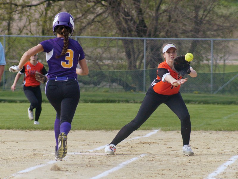 Brianna Crull led off with a hot shot to third, and then Argyle freshman pitcher Grace Ganshert threw wildly to first on a Lydia Bouc sacrifice bunt, allowing runners at the corners. With Bouc stealing second, Crull scored at the plate to make it 1-0. Karlee Kesler then reached on a dropped third strike and a fielder’s choice on a sacrifice bunt loaded the bases.