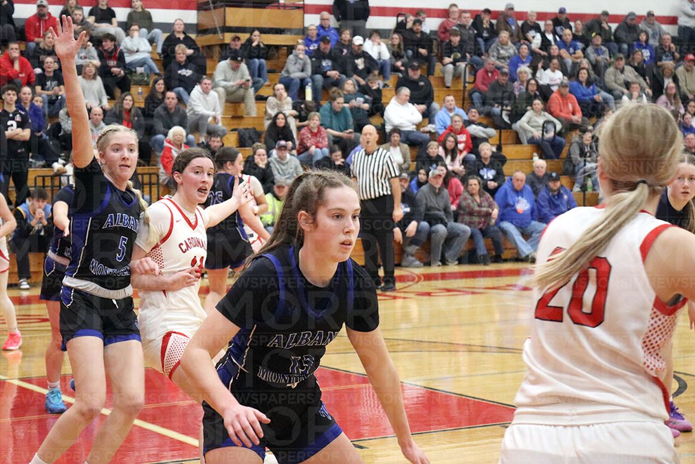 BRODHEAD — Sophomore Heidi Olson scored 26 points and Albany-Monticello made 20 of 28 free throws to overtake the Brodhead Cardinals 59-47 in nonconference girls basketball on Monday, Feb. 2.