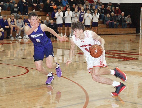 Kade King led Monroe with 19 points, including 12 in the second half. Schumacher finished with eight and Meyer six. Adam Hobson led Stoughton with 21, including five total 3s — and four in the second half. The Vikings hit seven 3s in the game.