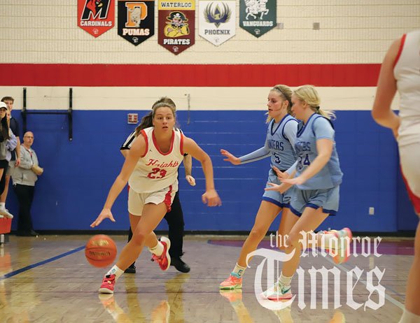 NEW GLARUS — In a series of unfortunate events for the Knights, Mineral Point used an 18-0 run in the final four minutes of a nonconference game on Monday, Dec. 18 to defeat No. 3-ranked New Glarus 59-48. The Knights’ final point came on a free throw from Payton Schneider at 4:19, while their last field goal was an easy bucket from Bella Brenkman near the six-minute mark.