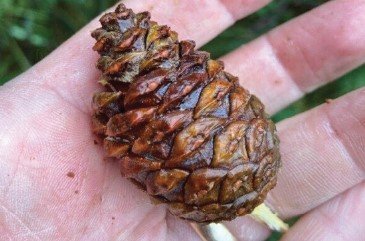 ● When mature, the seeds within will develop a dark brown seed coat with a papery light brown wing. The perfect time to pick the cones is before the cone opens.